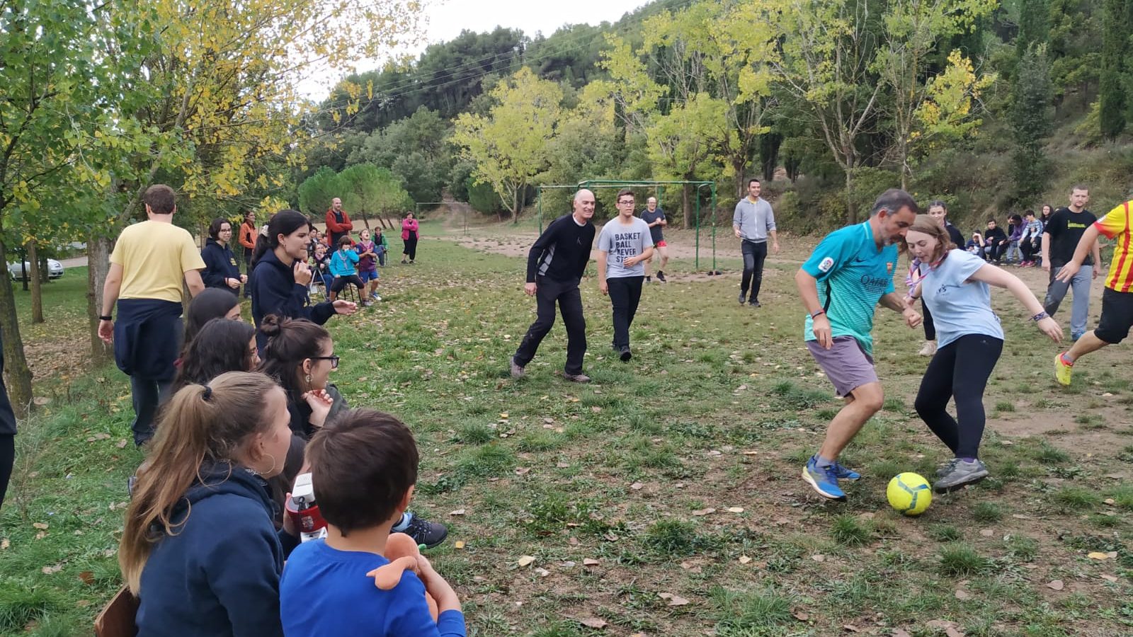 L’endemà al matí, les famílies venen a la casa a passar el dia amb nosaltres. Mentre van arribant, els infants i l’equip de monitores i monitors juguem a jocs que ens proporciona el Cae, com ara les bitlles catalanes o el Jenga gegant, entre d’altres. Un cop han arribat les famílies, es juga al ja tradicional partit de futbol de famílies contra monitors i monitores.