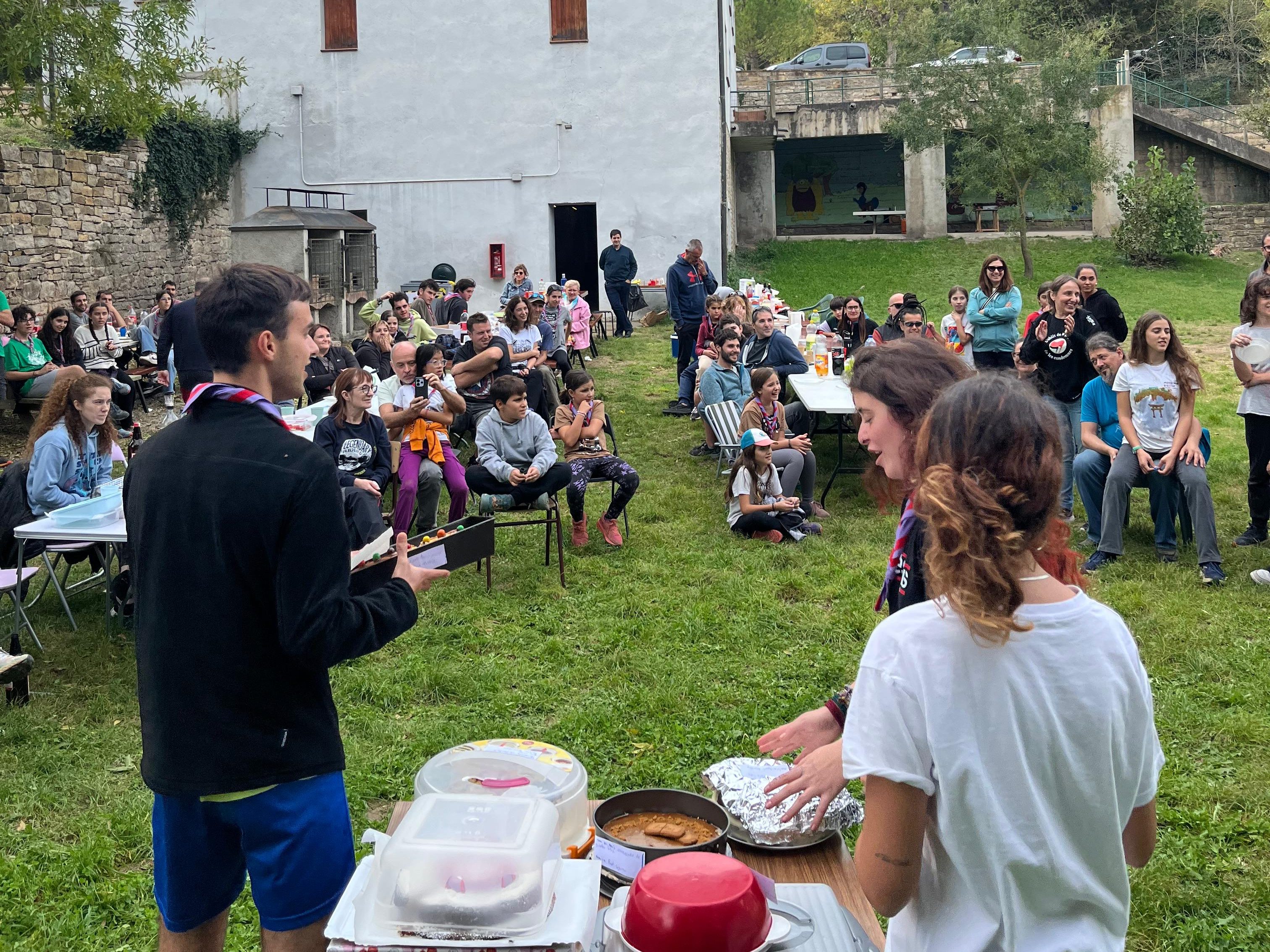 Tot seguit, anem a dinar al pati de la casa. A més a més, fem un concurs de pastissos que fan les famílies, on els i les monitores en som el jurat. Després de dinar, entreguem els premis dels concursos, recollim i els infants tornen cap a casa amb les seves famílies.